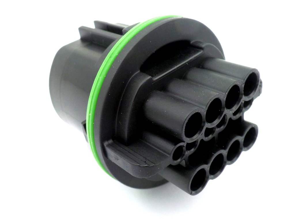Connector 14 way blue lock male headlight sealed wiring plug supplied with terminals, cable seals and green terminal lock.