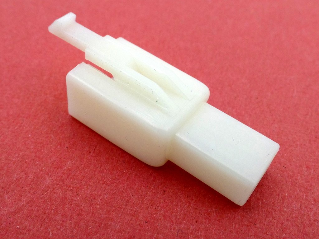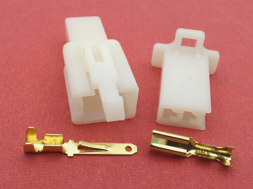 Connector cream MTW Latched 2.8mm 2 way plug sets with terminals. Used on Japanese and European motorcycles. With the connector being cream in colour it has that aged look of original connectors