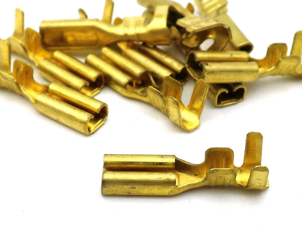 Terminal female brass 2.8mm. Crimp with non insulated crimping tool. Available in packs of 10 and 50’s.