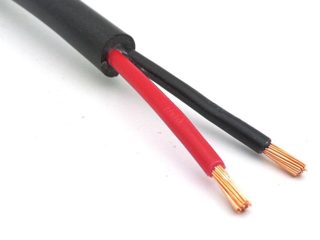 Cable UK manufactured 2.5mm² 14 AWG round twin 2 x 35/0.30 thin wall wire rated at 2 x 29 amps. 12 volt (max 60v). Car, van, boat camper electrical systems.