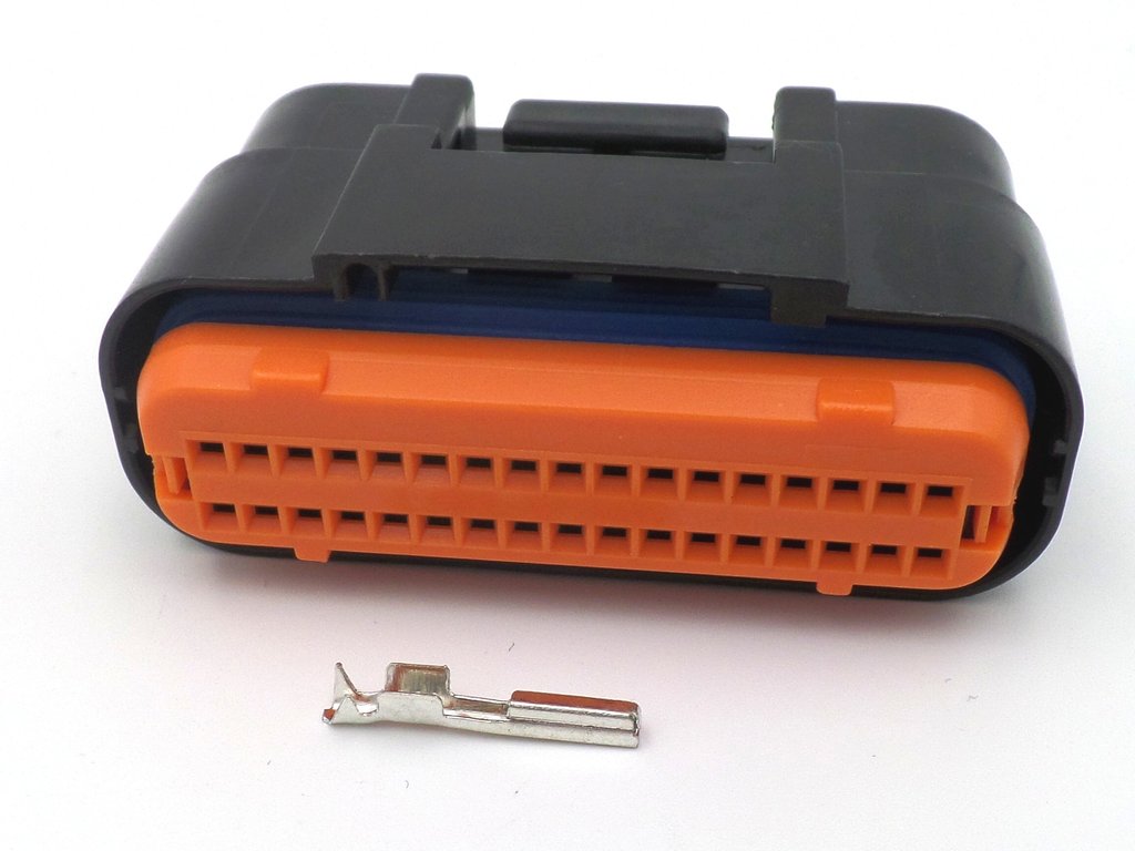 Connector complete 34 way Black ECU plug supplied with 34 x terminals and orange cap. Fits a lot of Suzuki motorcycles with the orange cap connector, Kawasaki ZX10R 2008-10 and Yamaha R1 2009-11